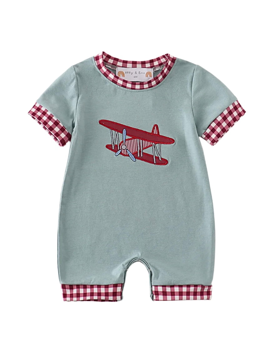 Sage Airplane Appliqué Romper