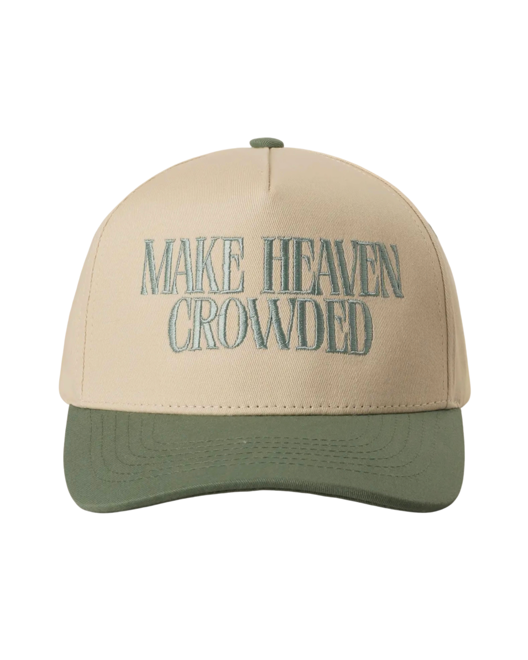Make a statement with our cap featuring the embroidered phrase "MAKE HEAVEN CROWDED."